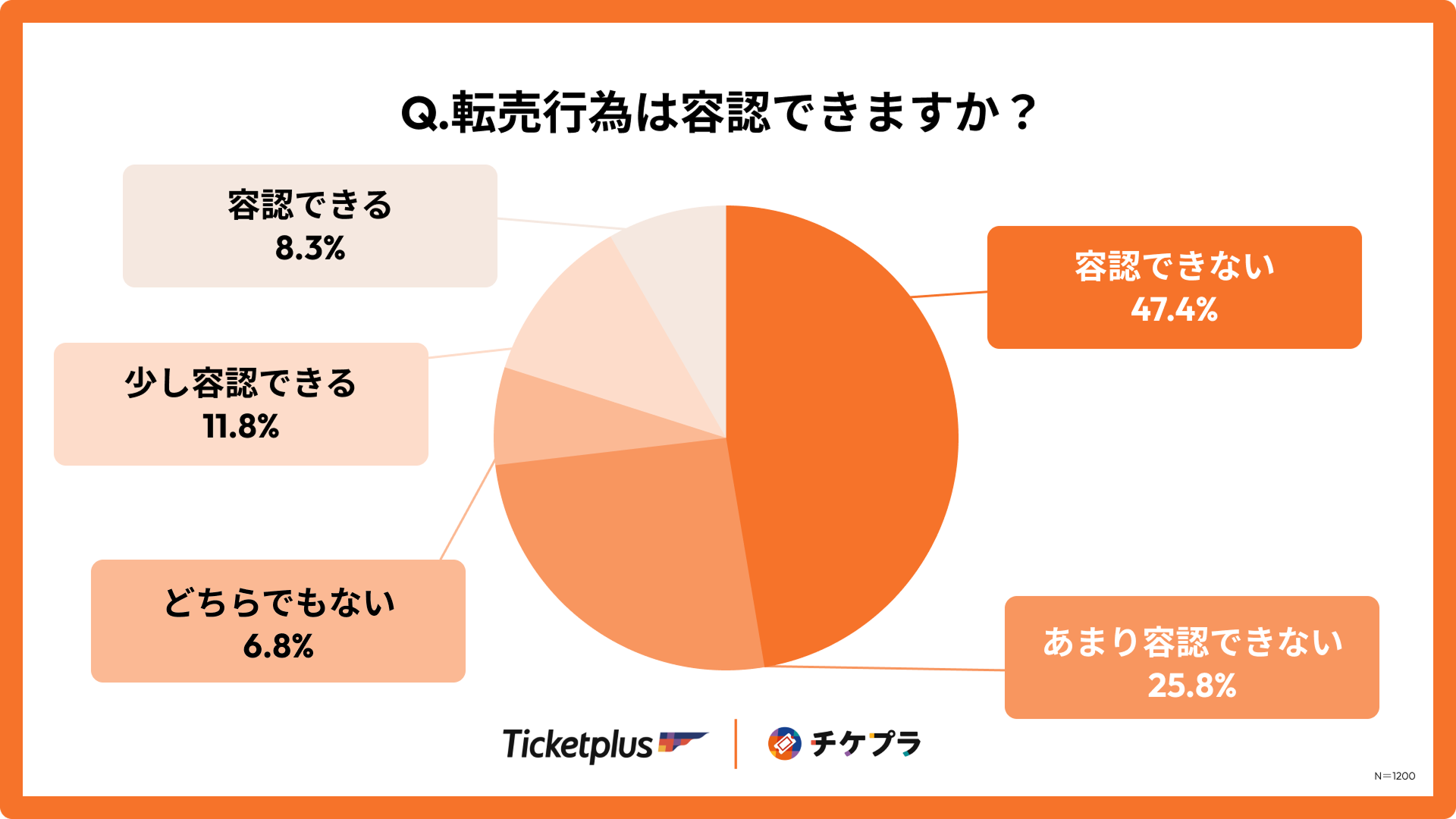 電子チケット事業やチケット二次販売「チケプラトレード」を運営する株式会社チケットプラス(本社:東京都渋谷区、代表取締役:佐藤 元)は、全国のライブ・フェス・イベントのチケット購入経験者1,200人を対象に「チケット不正転売に関する実態調査」を実施しましたので、結果を発表いたします。